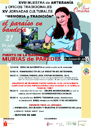 Todo preparado para una nueva edición de la MUESTRA DE ARTESANÍA Y OFICIOS TRADICIONALES de MURIAS DE PAREDES que se celebrará el próximo día 21 DE JULIO EN EL PUERTO DE LA MAGDALENA, enmarcada en las Jornadas Memoria y Tradición de cada verano.